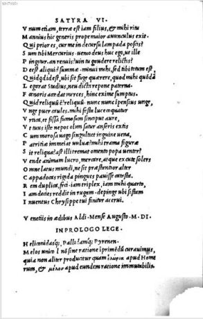 1. Title page of 1501 Aldine Juvenal | 2. Colophon of 1501 Aldine Juvenal |