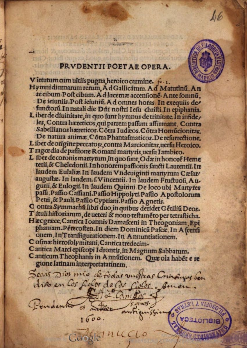 Aldus’s 1501 quarto edition of Prudentius has been digitised by the Universidad Complutense, Madrid: https://hdl.handle.net/2027/ucm.5320773300.