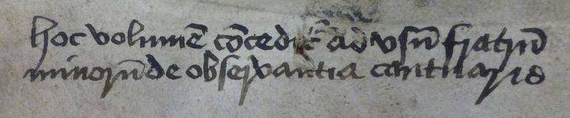 For Canterbury’s Franciscan convent, there is again a single survivor: a 1483 edition of William of Ockham’s commentary on the Sentences at Lambeth Palace: